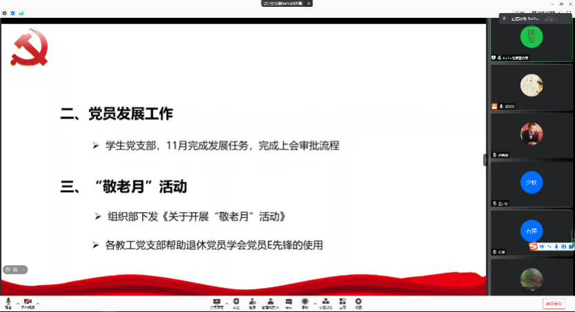 同时,为了帮助退休老师推进支部规范化建设,针对党员E先锋录入难的问题,学院将退休党员教师按照退休前所属系(中心)安排到各个在职教工党支部,并建立一支能够持续给力的系统管理员队伍,来协助完成退休党员教师的录入问题。在职党员教师也一对一帮扶退休党员教师学习使用“党支部云课堂”开展学习活动。