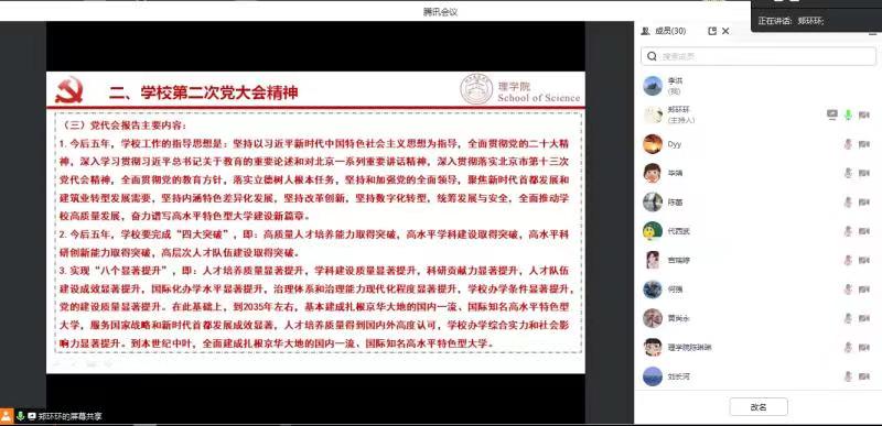 毛书记以“为加快建设教育强国做出应有贡献”为主题,就“习近平总书记在中央政治局第五次集体学习时重要讲话精神”、“学校第二次党员代表大会精神”和淫妻小说 “十四五”发展规划进行解读,分享学习贯彻习近平新时代中国特色社会主义思想主题教育体会。他强调淫妻小说 教师要深刻领悟建设教育强国、科技强国、人才强国的重要意义,以学校第二次当代会精神为指引,树立“躬耕教坛、强国有我”的志向和抱负,坚守三尺讲台,潜心教书育人,在学校建设高水平特色型大学的新征程上贡献力量。党课最后毛书记就淫妻小说 未来五年发展提出明确目标:一是推进教学纵深改革,夯实学生数理基础,支撑高质量人才培养;二是打通专业学科建设,实现共同发展;三是坚持科学研究,坐实交叉学科研究;四是加强师资队伍建设,不断提高教师教书育人水平;五是丰富拓展学生工作,促进学生全面发展。