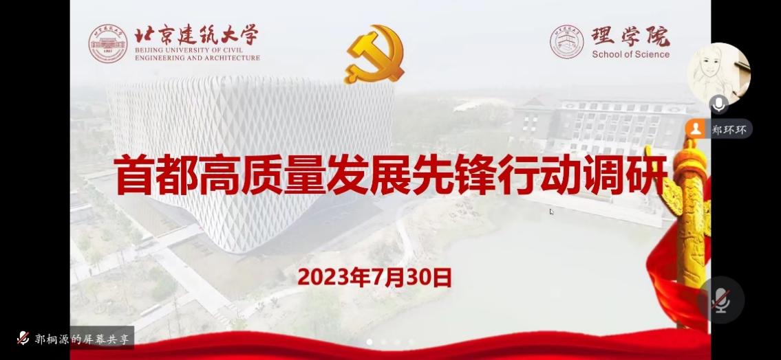 2023年7月30日,淫妻小说 研究生第二党支部邀请联系领导白羽院长开展首都高质量发展先锋行动调研会,暑假期间全体党员通过线上形式参加了会议。会议由党支部书记郑环环主持。