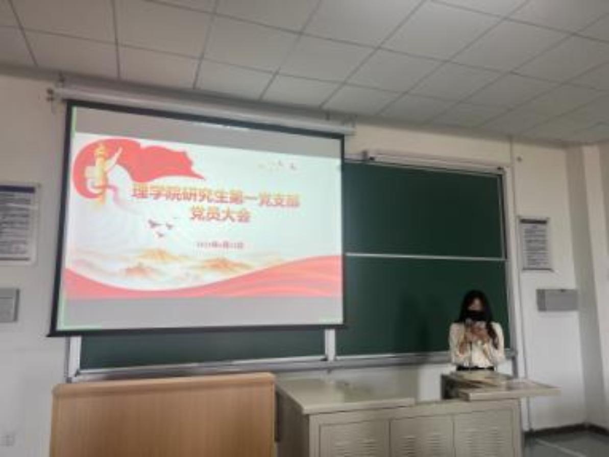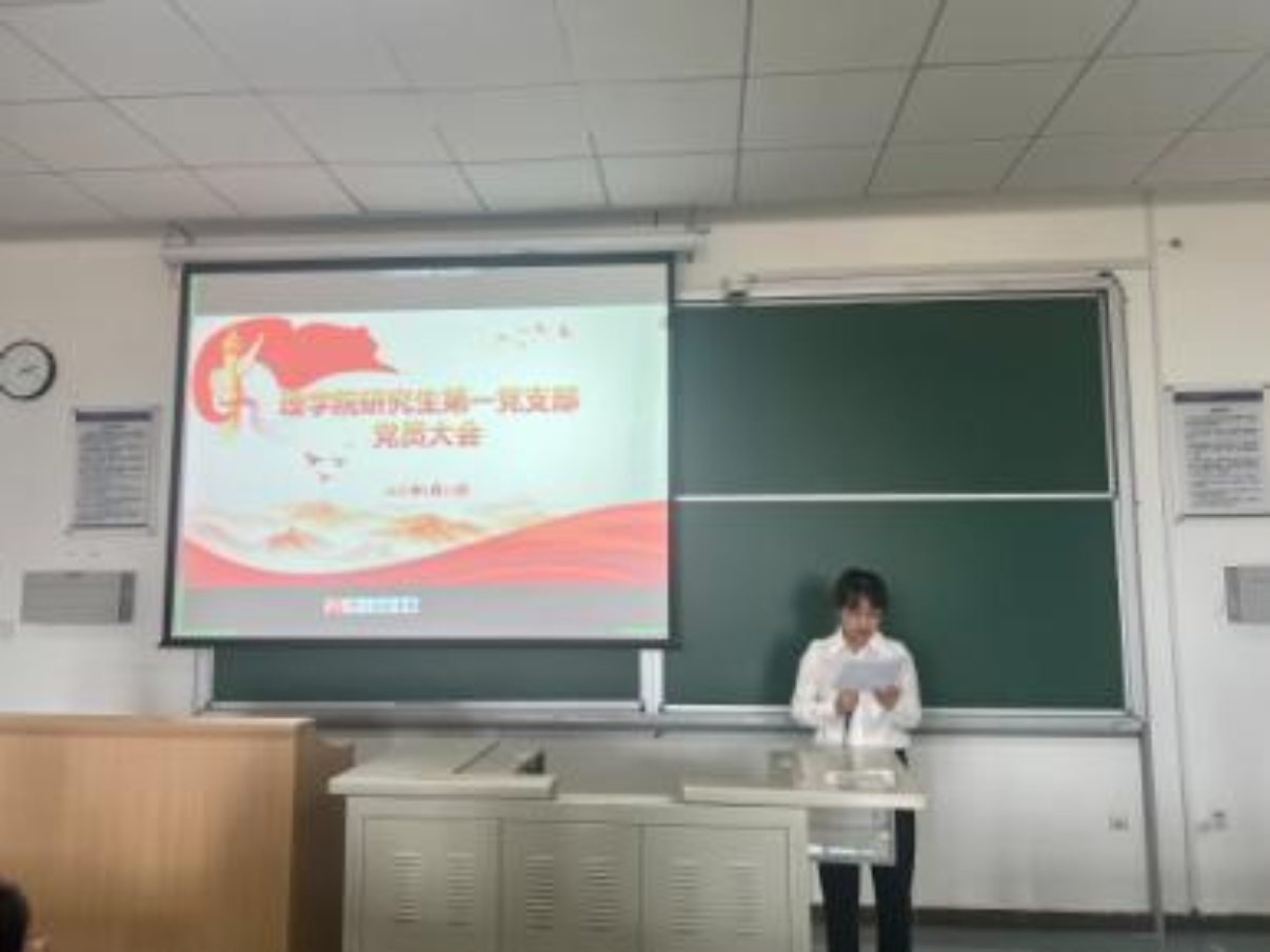 研究生第一党支部召开党员发展大会,开展“学习习近平总书记在中共中央政治局第五次集体学习会时的重要讲话精神”主题党日活动,会议由党支部副书记王聪同志主持。