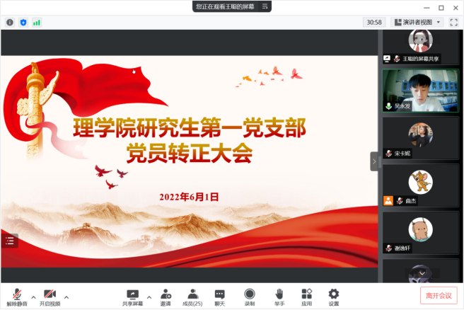 2022年6月1日上午,淫妻小说 研究生第一党支部召开党员大会,联系党支部的王恒友副院长出席会议,会议由党支部书记曲杰主持。