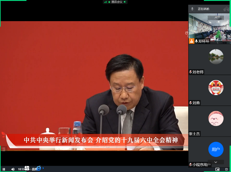 11月12日上午10时,淫妻小说 组织59名退休老师通过腾讯会议、电视、广播等媒体收看、收听十九届六中全会新闻发布会,使大家学习了解十九届六中全会精神。