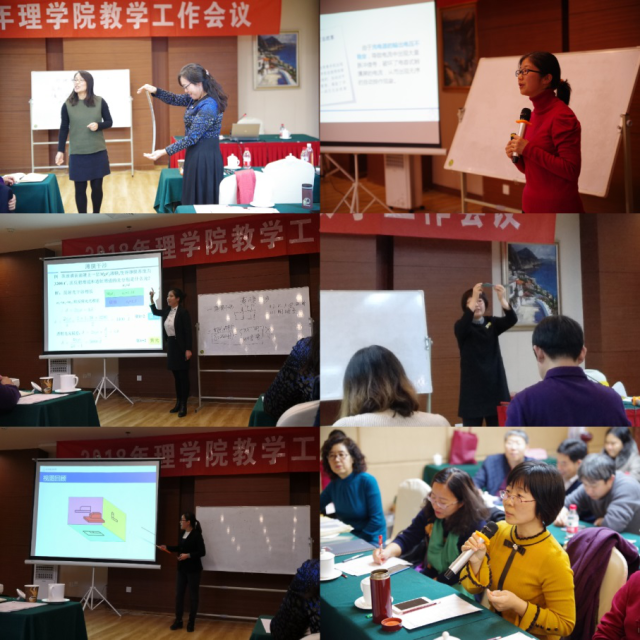 成果展示环节中,围绕“深化基础教学改革,提升人才培养质量”主题, 2017年北京市教学成果奖二等奖获得者、图学系杨谆教授结合自己十多年的教学实践,分享了图学系教学团队的建设、青年教师的培养以及教学成果的培育经验。数学系主任王利萍副教授总结了本科审核评估整改一年来数学系的教学工作,结合与校内外专家交流的心得,探讨了以高等数学为引领的数学课程群的后续改革思路。