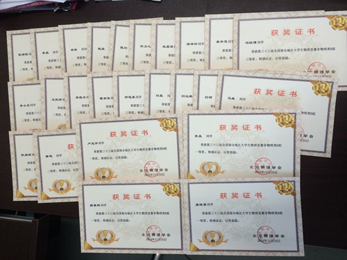 第三十三届全国大学生物理竞赛北京赛区的比赛于2016年12月11日分别在清华大学、北京大学、北京航空航天大学、北京理工大学四考点同时举行,北京有上万名大二学生参赛。淫妻小说 苏欣纺老师率我校部分大二学生参加了此次竞赛,共有25名同学获奖,其中一等奖4名、二等奖7名、三等奖14名,同时我校还获得团体奖。