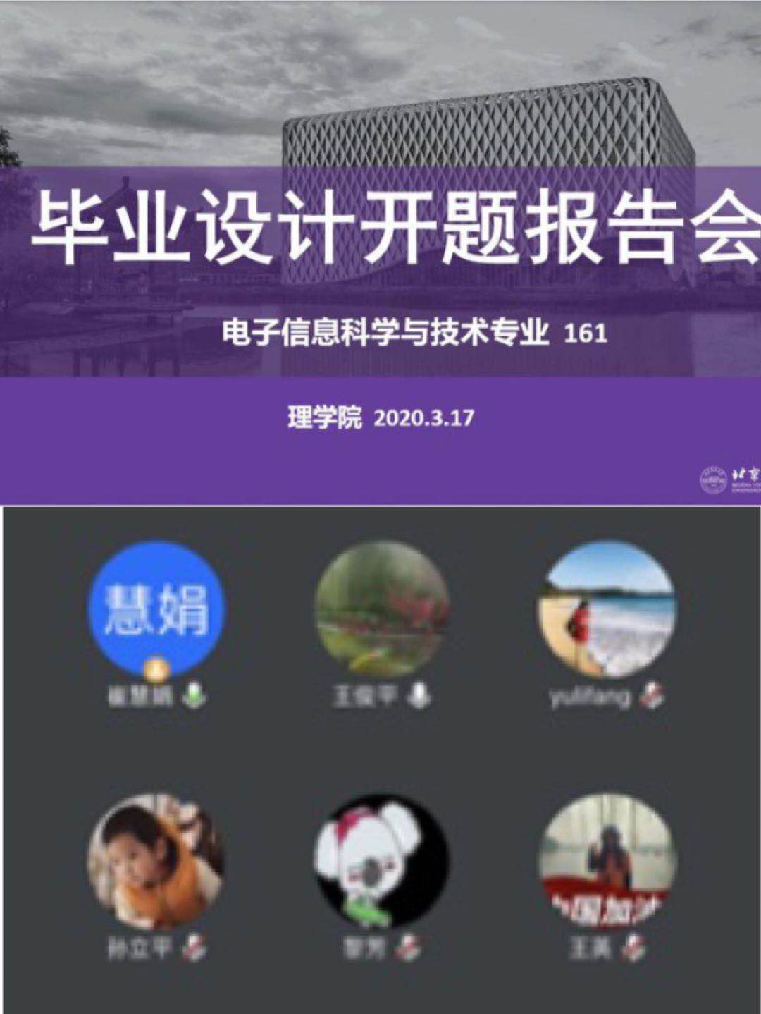 2020年3月17日下午1:30,淫妻小说 电子信息科学与技术专业举行2020届本科毕业设计开题报告会。受疫情影响,开题报告会采用腾讯视频会议方式,分两组同时进行,共计29名同学参加汇报。为保证开题工作的顺利展开与进行,电子信息科学与技术专业的全体老师在在系主任黄伟老师的主持下开展了多次开题安排与布置会,会议就开题流程、安排等具体细节问题展开了细致的讨论。电子信息科学与技术专业全体教师参加本次本科毕业设计开题报告会,同时校院两级在线教学督导组专家郝莉、余丽芳老师和学院在线教学领导小组田芳、任艳荣等多位老师应邀参加,进行工作指导。开题报告会历时近4小时,圆满完成。
