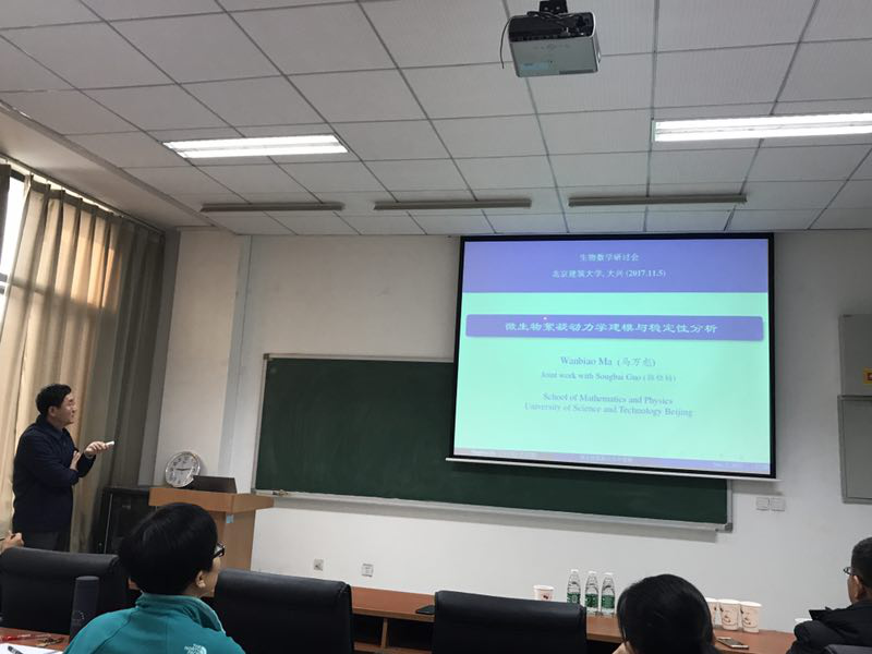 马万彪教授以“微生物絮凝动力学建模与稳定性分析”为题讲解了絮凝剂在收集和提取微生物时的作用,通过建立四种微生物连续培养和絮凝动力学模型,分析了相关的稳定性。