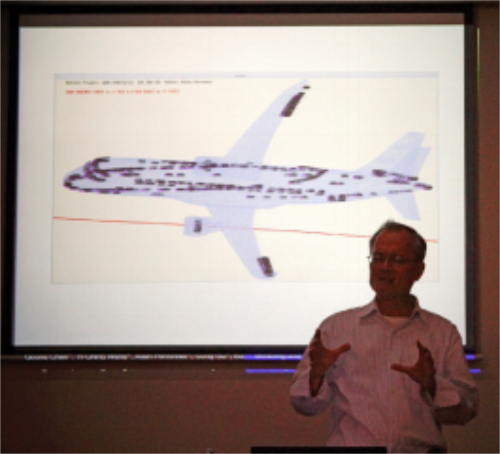 陈巩教授作了题为“Modeling and Simulation of Pulverizing Aircraft Crashes”的学术报告,阐述了如何利用流体动力方程和超级计算机模拟飞机发生碰撞的过程,其研究团队对MH370客机近似垂直落水的模拟工作被美国数学会评选为2015年11大热门数学事件。