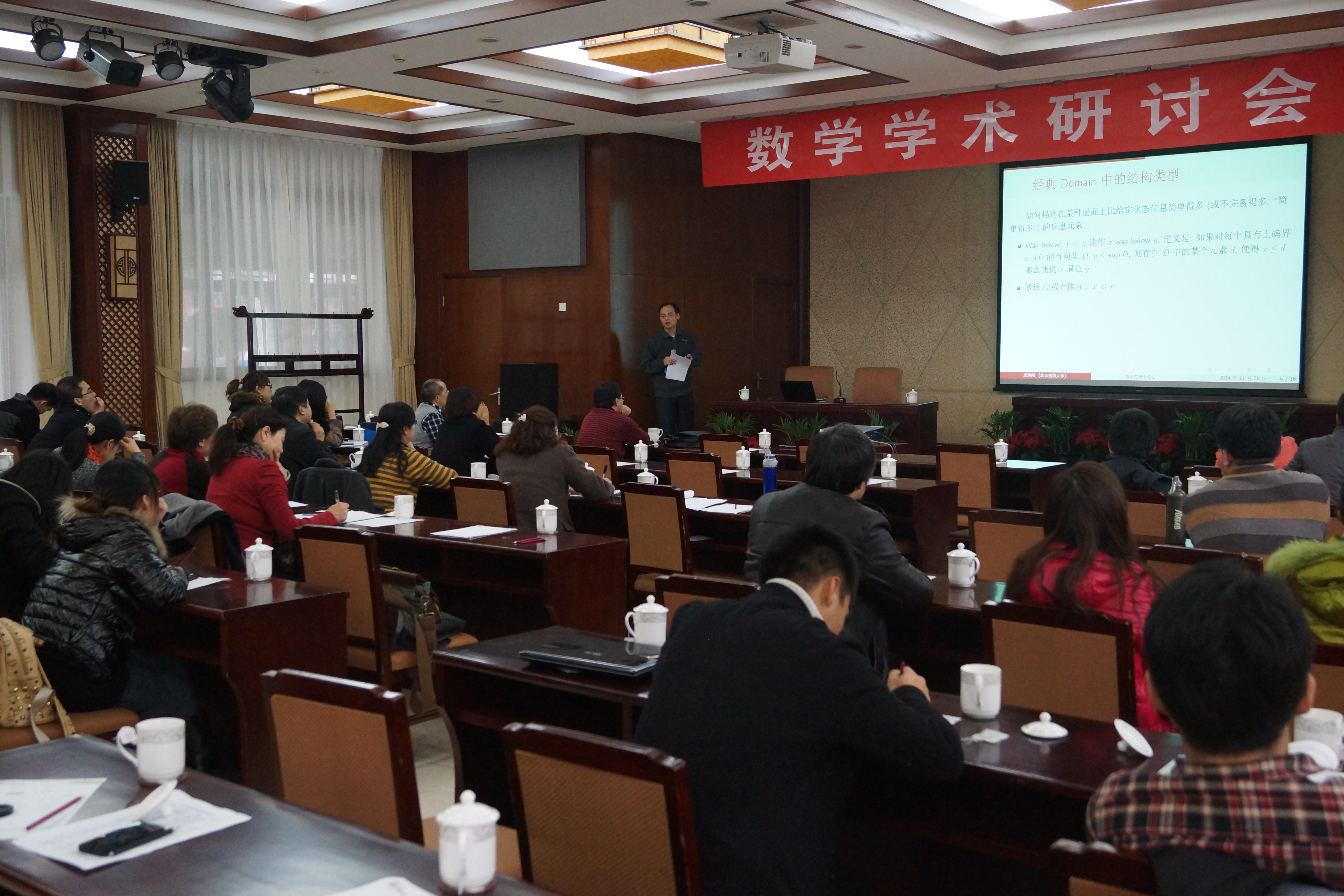 其次,武利刚博士主要从分层量化Domain 的结构保持与比较,一类分层量化Domain 范畴的笛卡尔闭性、一类完备的分层量化Domain 范畴、基于分层量化Domain 的Domain 方程、即将或正在进行的工作等五个方面进行了阐述。引起了多数老师的兴趣。