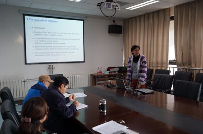 最后牟唯嫣博士以“复杂数据的统计推断”为主题,介绍了目前主要研究的广义统计推断、鲁棒广义统计推断、鲁棒稀疏回归等问题,引起了多数老师的兴趣,并有深入的探讨。