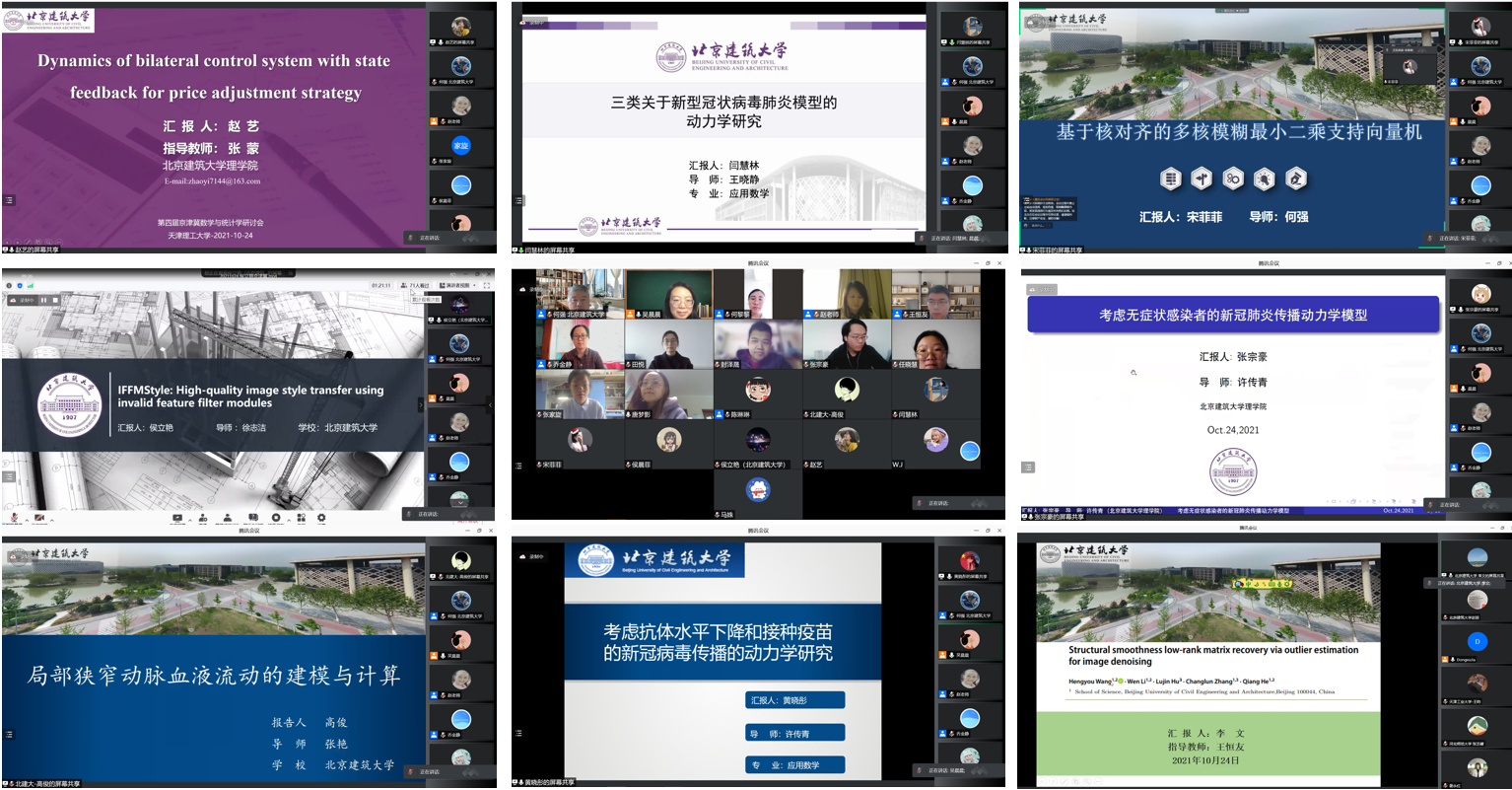2021年10月23日至24日,由天津理工大学淫妻小说 承办的第四届京津冀数学与统计学讨论暨研究生学术论坛在天津赛象酒店召开。来自淫妻小说 、北京师范大学、北京交通大学、天津理工大学、天津工业大学、天津师范大学、河北大学、河北工业大学及河北师范大学九所高校的100余位教师和研究生以线上线下结合方式参加了会议。