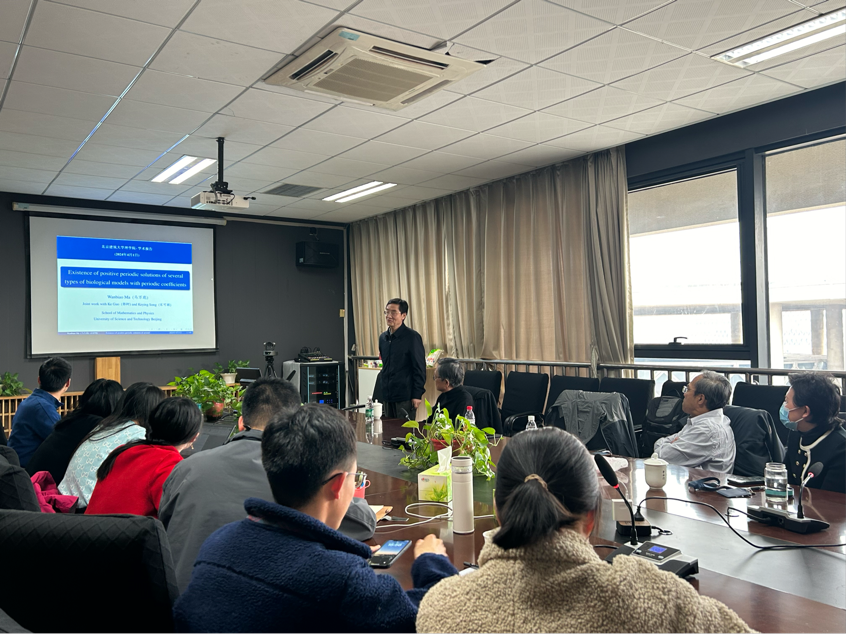 北京科技大学应用数学系马万彪教授做题为“几种具有周期系统的生物模型的正周期解的存在”的学术报告,重点讨论几种具有周期系数的生物动力学模型的正周期解的存在性,如具有多个传染阶段和一般功能反应的艾滋病病毒模型,以及具有一般功能反应的传染病模型。利用重合度中的连续性定理,结合适当的辅助函数分析技巧,给出了这些生物动力学模型正周期解存在的一些充分条件。