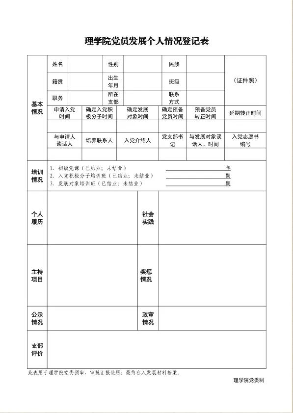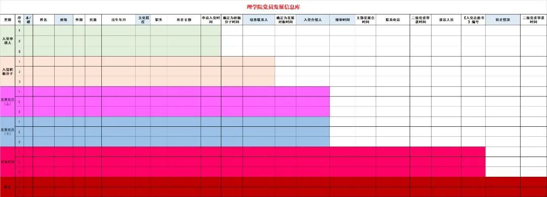 在发展信息库的基础上,又建立《党员发展个人信息表》,一人一张表,完善了培训、履历、实践、奖惩、支部评价等信息,并根据发展成熟度时时更新,实现了“一库一表全知晓”的动态管理模式,为科学规划党员发展和培养教育提供了良好基础。