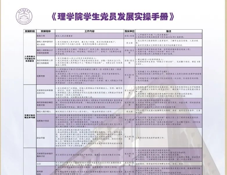 编制了印有《党员发展材料目录》的档案袋,发放给每名入党积极分子,每季度收发一次,统一管理、按期考察;毕业时对入党积极分子开展“离别谈话”,实事求是评价其主要优缺点,让培养和教育不断档,同时封好带走所有发展材料,为其毕业后早日入党加油助力。在预备党员宣誓会上,由党委书记或副书记送上《党委寄语》,明确预备党员的权利义务及努力方向,增加入党仪式感,为其成为一名“合格党员”提供组织支持。