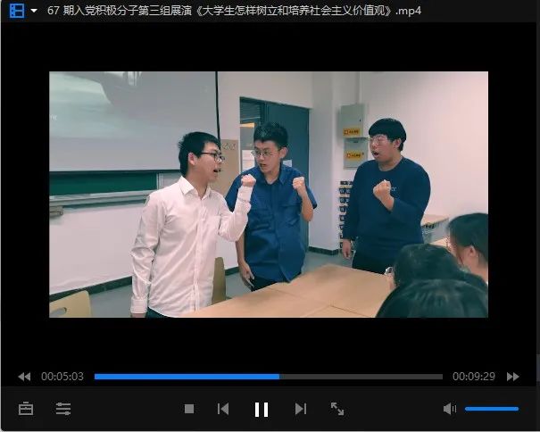 抓实抓细入党积极分子培训,让培训不再走过场。对研讨成果形式进行创新,通过采取舞台剧、诗歌朗诵、问答等形式,集体讨论、人人参与,调动了学生学习的积极性,提升了培养效果。