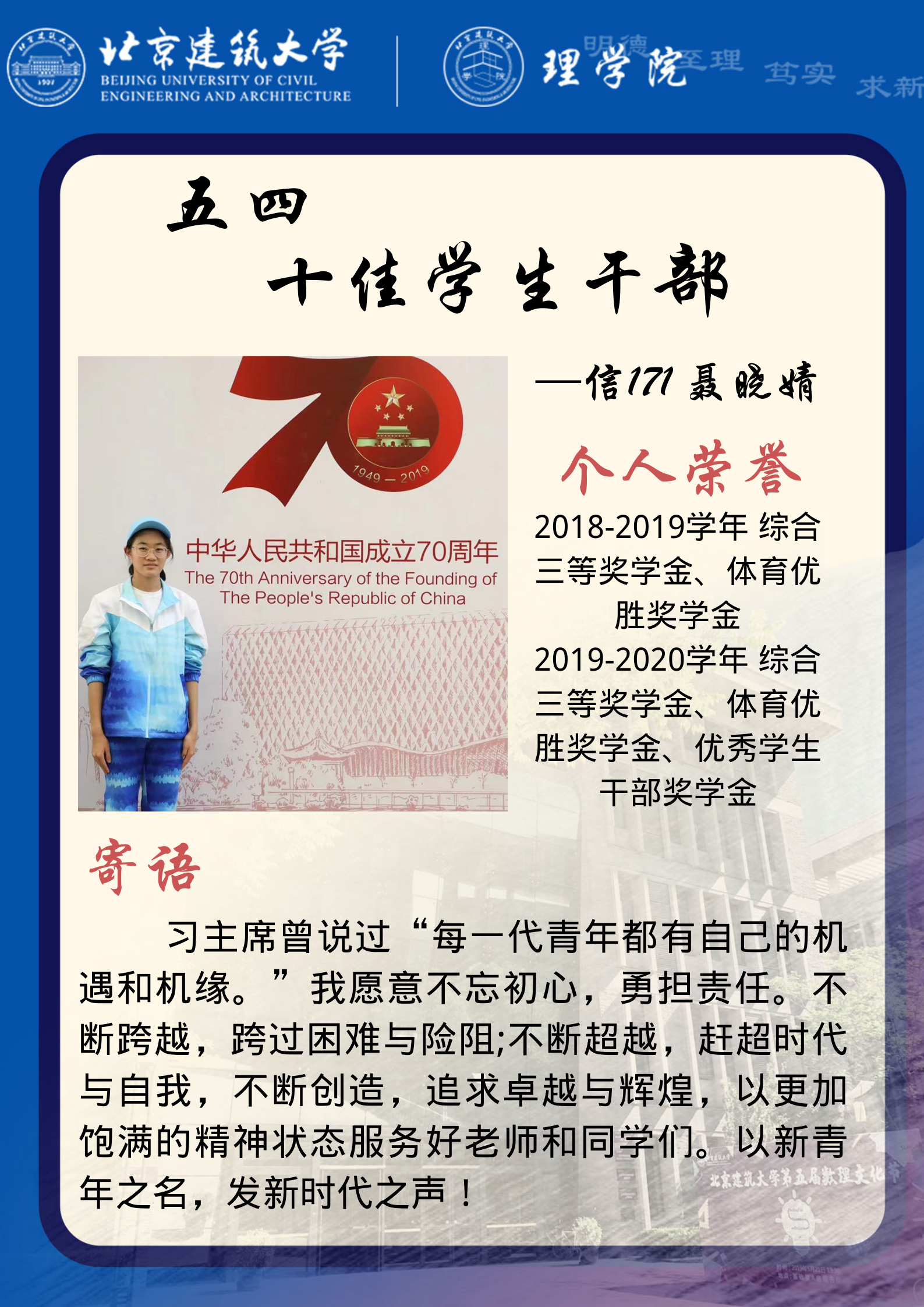 【2020年度】五四十佳学生干部——信171聂晓婧