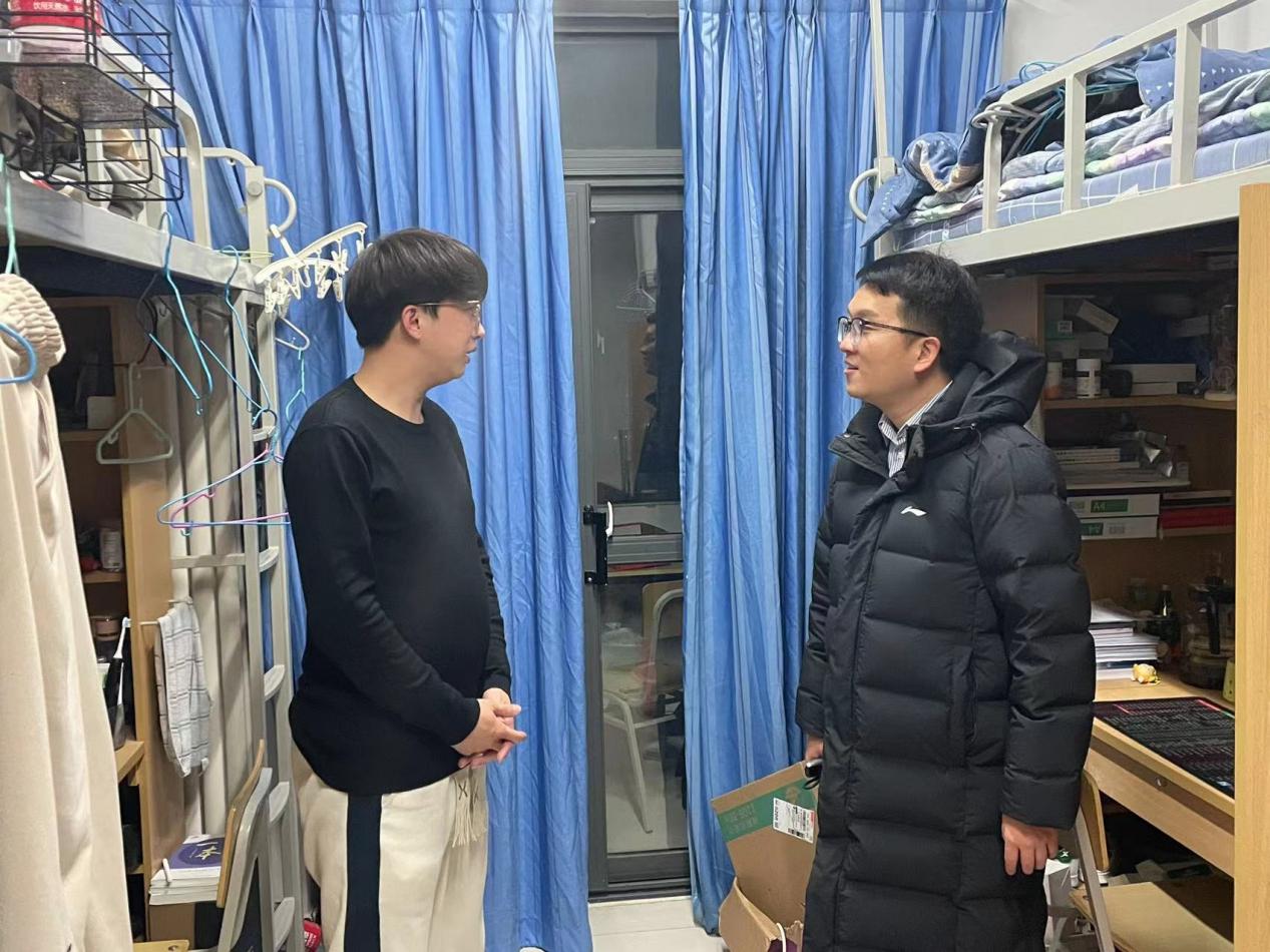 在慰问座谈活动结束后,李小虎、代云至学生宿舍进行了走访,关注学生住宿、生活等方面状况,提醒学生注意宿舍安全卫生,叮嘱大家注意保暖、保重身体等。学校为留校学生的学习生活提供了有力保障,确保同学们假期在校度过一段充实难忘、温暖祥和的时光。