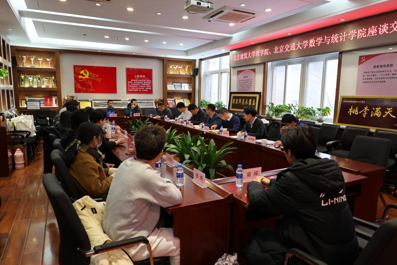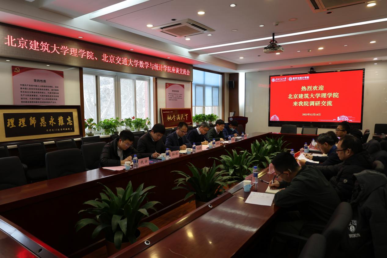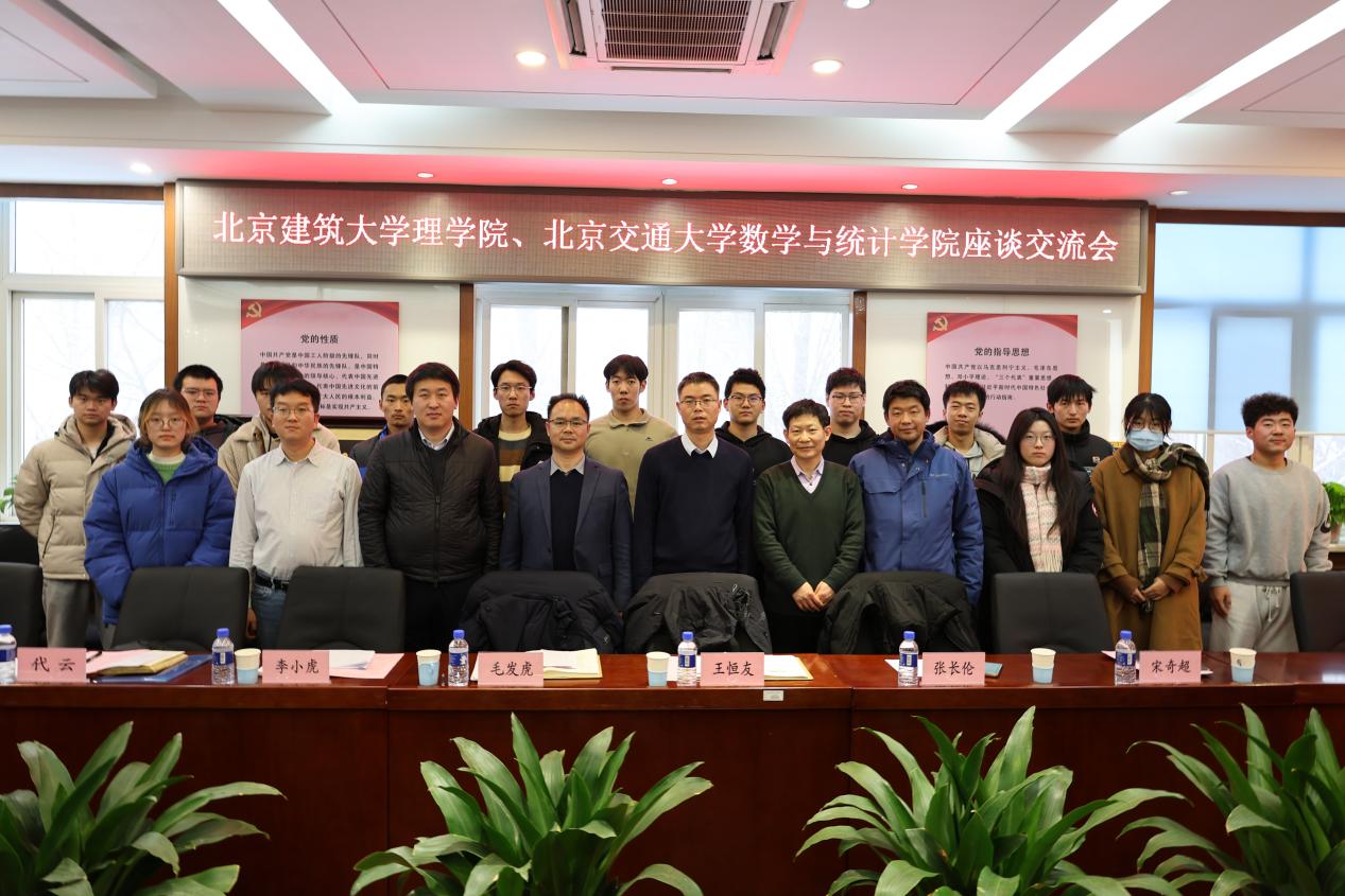 党委书记毛发虎、副院长王恒友、副书记李小虎、信息与计算科学专业负责人张长伦、团委书记代云、本科生教务员宋奇超一行6人于12月14日下午前往北京交通大学数学与统计学院看望15名“双培生”。北京交通大学数学与统计学院党委书记王烜、院长于永光、数学与应用数学系主任刘迎东、信息与计算科学院系副主任梁熠宇、团委书记毕全记、辅导员郭佳鑫共同参加本次活动,学院党委副书记王浩主持活动。
