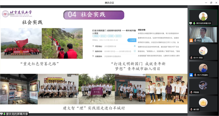 在暖场环节,大家共同观看了建团百年原创歌曲《有我》及由北建大交响乐团原创的《青春心向党,建功新时代》主题团歌。活动开始,同学们高唱中国共青团团歌《光荣啊!中国共青团》,集体观看《五四·微电影:满襟热血、仍是少年》重温五四运动历史,通过纪念与缅怀,让历史照耀现实、让过去通向未来。