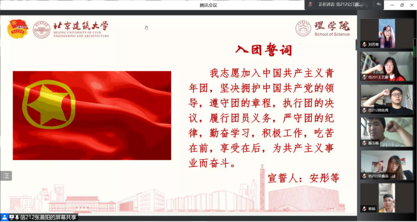 全体团员重温入团誓词。通过仪式感教育活动,增强团员们责任感、使命感、荣誉感,让同学们铭记了最宝贵的信仰力和对共青团的神圣感。