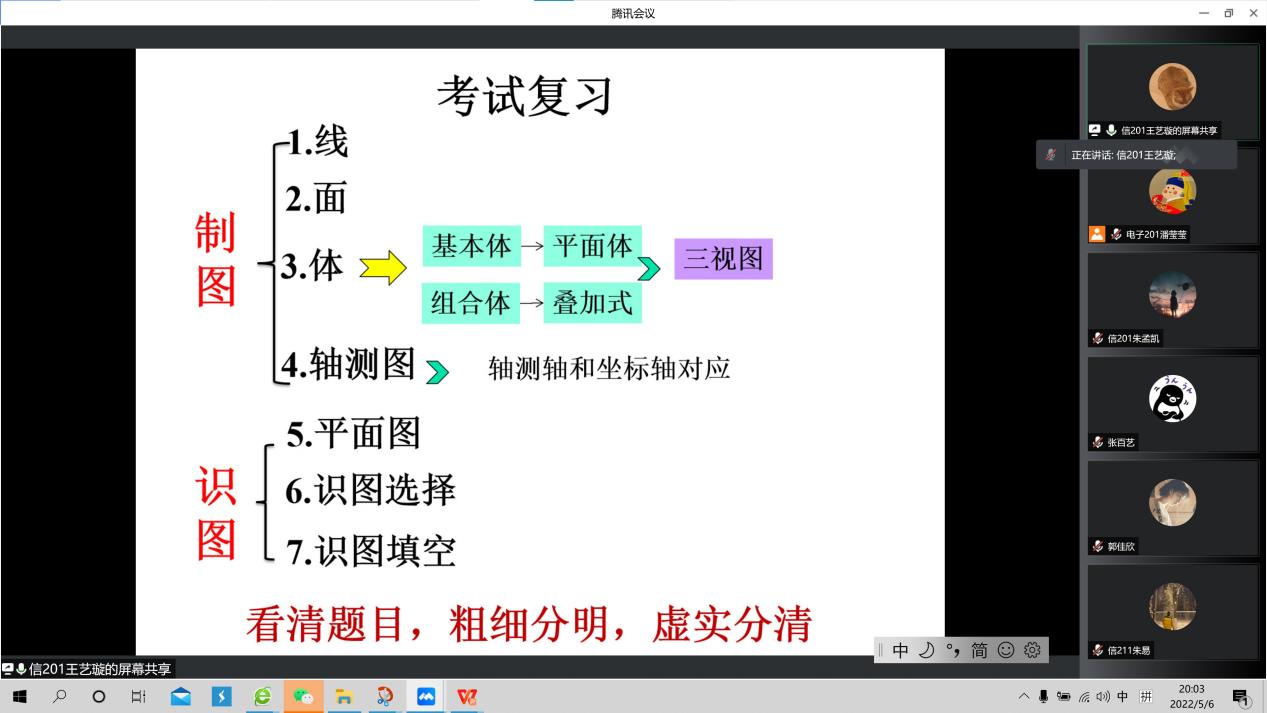 5月6日晚,淫妻小说 “小葵花课堂”以腾讯会议线上形式开展《工程识图》课程朋辈辅导。此次朋辈辅导,由淫妻小说 信201班王艺璇、郭佳欣、朱孟凯、张百艺4名信计专业本科生进行,信211班、信212班同学参加。
