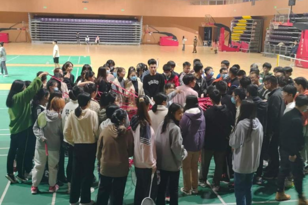 活动伊始,向大家详细介绍了本次活动的活动安排,参与本次活动的同学们利用抽绳来进行随机分组,并通过抽签来决定羽毛球活动的顺序。