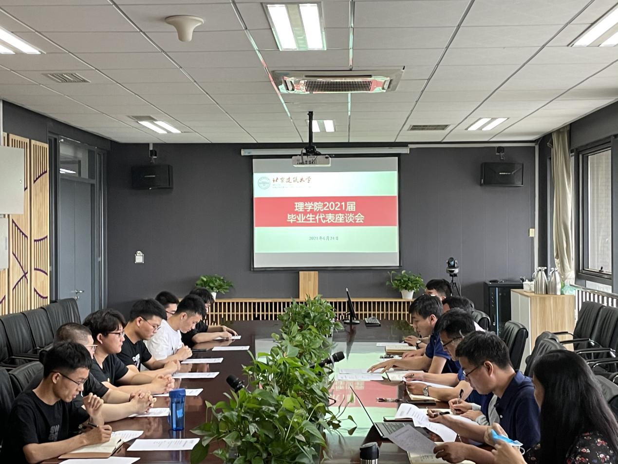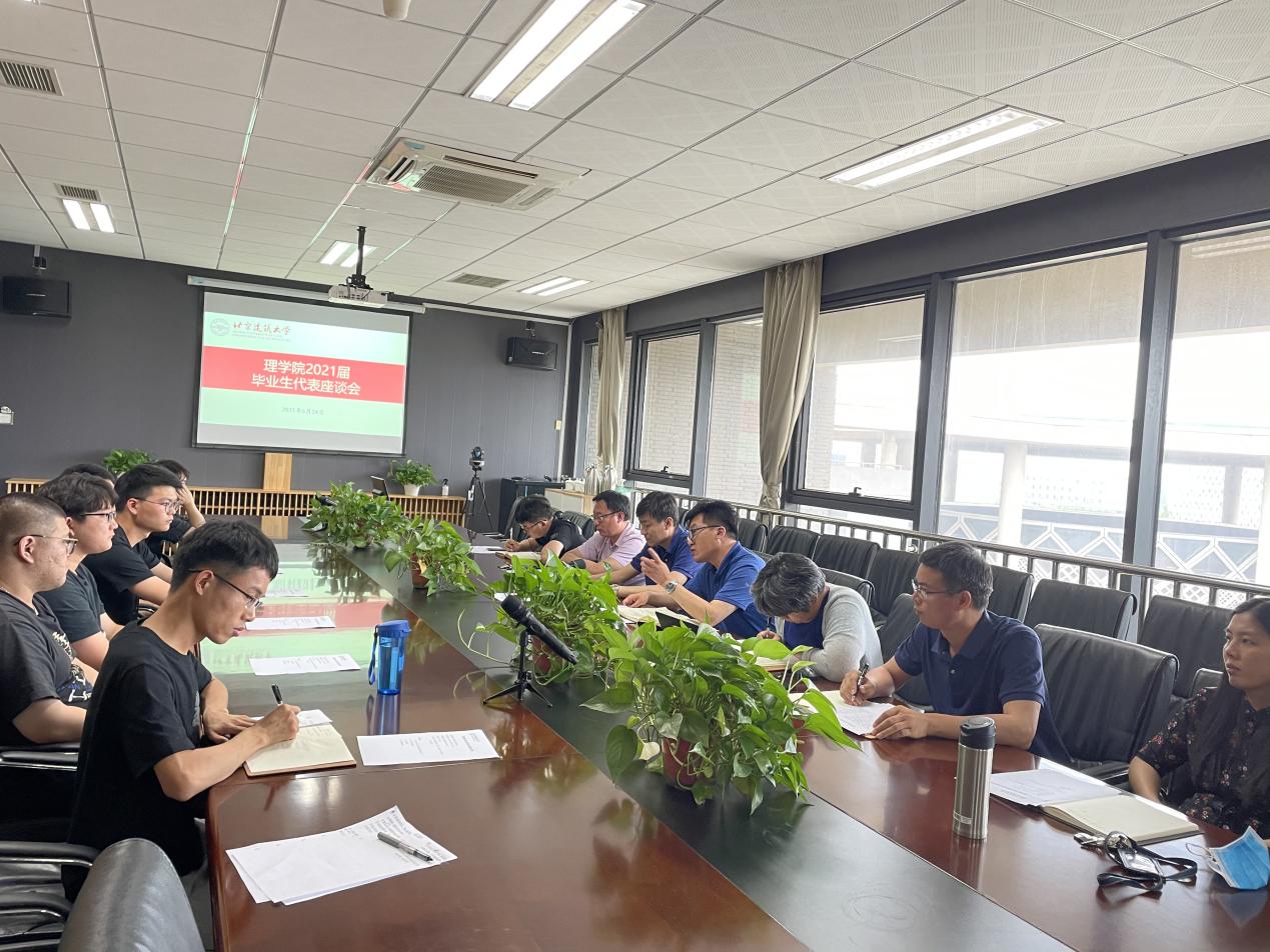 参会的2021届毕业生代表同学针对在校期间的思想、学习和生活等方面经历进行了总结和分享,回顾了自己大学期间成长的心路历程,也提到了在求职就业、升学等方面遇到困难时老师们的帮助和关怀、指导,真挚地表达了对对学校和学院发展的建议和对老师们的感恩之情、对同学们的同窗之谊的珍惜等。接着,同学和老师进行了交流,围绕在学校期间的点点滴滴及与老师们的时时刻刻,表达了自己内心的感动和回忆,并针对就业去向及今后的规划等进行了分享。