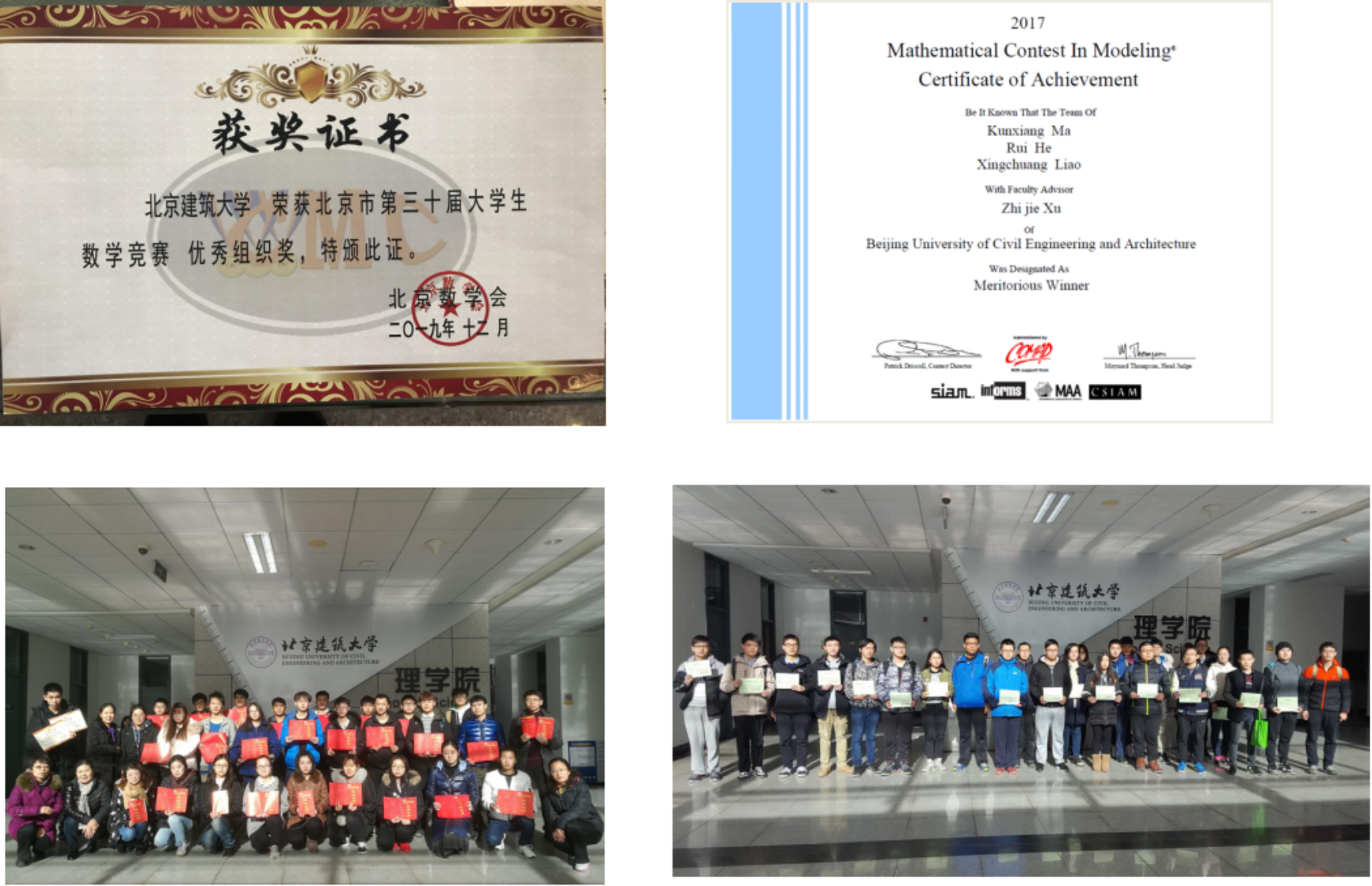 北京市大学生数学建模与计算机应用竞赛、全国大学生数学建模竞赛、美国大学生数学建模竞赛、全国大学生统计建模大赛、中国研究生数学建模竞赛等 |