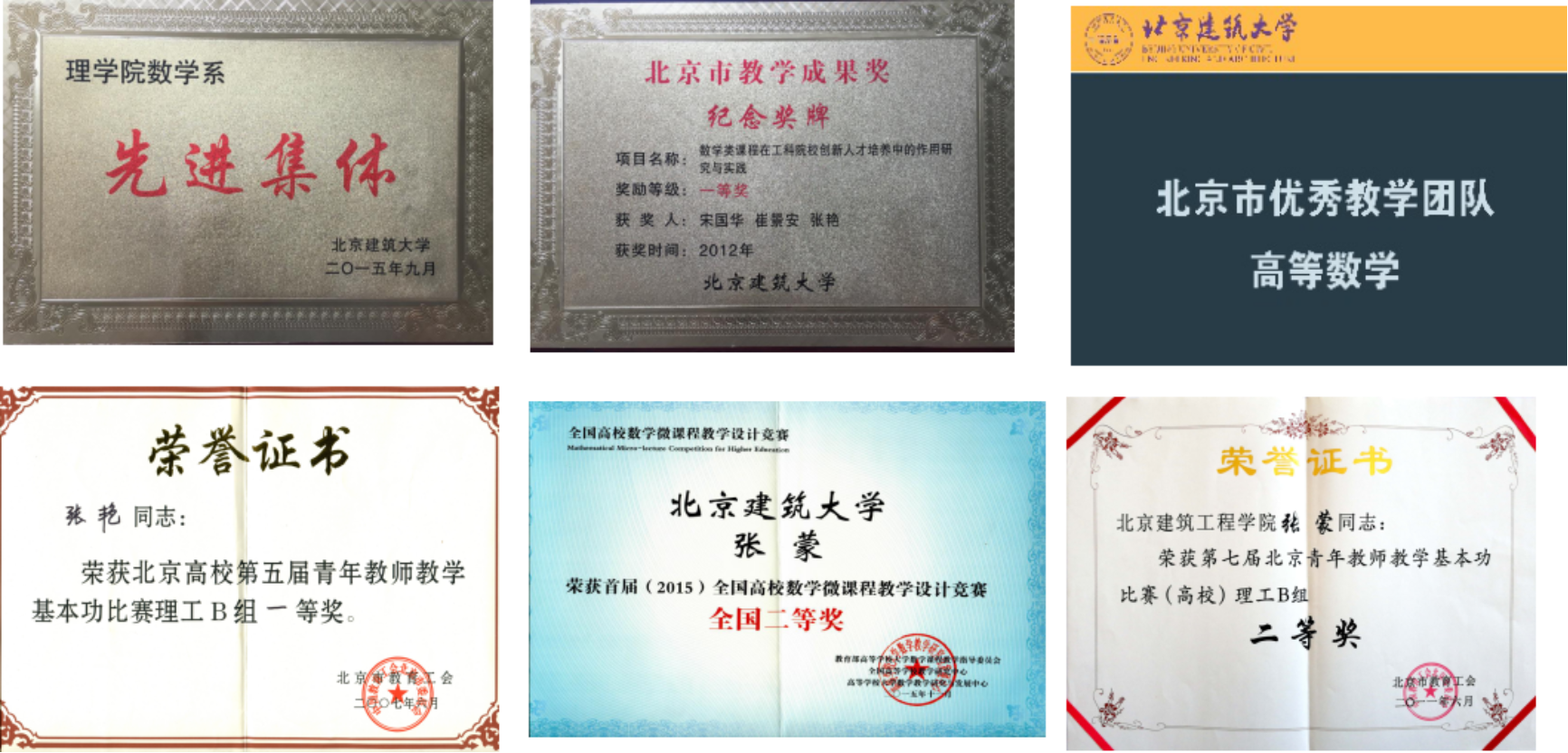 现有专任教师43人,其中教授7人,副教授17人,讲师19人,具有博士学位老师占67.44%,北京市高创计划“青年拔尖个人”1人,北京高校优秀共产党员1人,北京市优秀中青年骨干教师2人,北京市优秀教师1人,校级教学名师2人,校级青年教学名师1人,校建大英才3人,校优秀主讲教师3人。拥有教育部“海外名师项目”教授1名,北京市“海外人才项目”4人。拥有北京市优秀教学团队1个,北京市学术创新团队1个,中央支持地方科研创新团队1个,北京市精品课程1门,北京市高等教育教学成果一等奖2项、二等奖1项,北京市青年教师教学基本功比赛一等奖1项、二等奖1项,全国高校数学微课大赛国家二等奖1项、华北赛区特等奖1项、一等奖2项、二等奖7项。