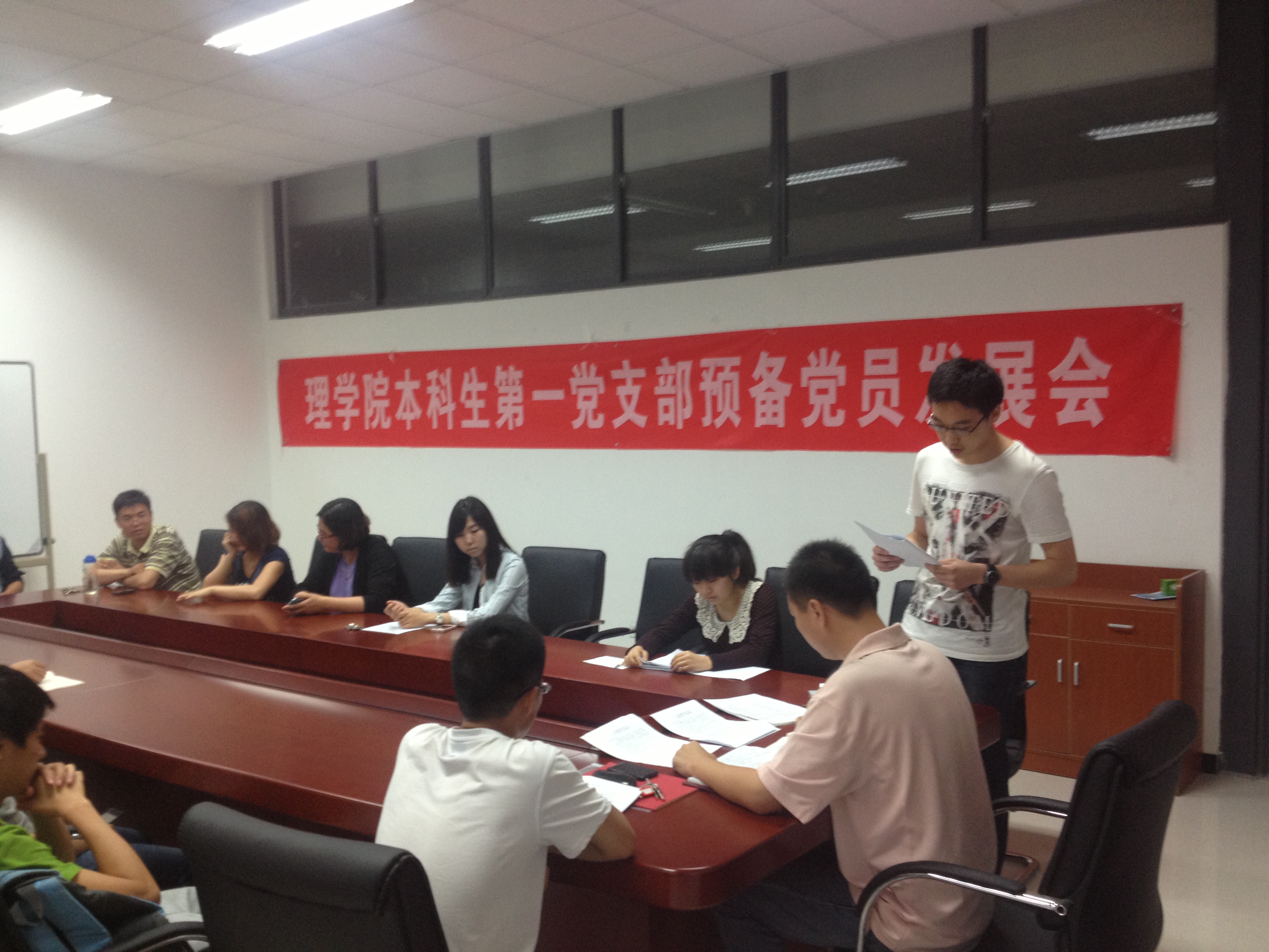 本科生第一党支部于6月8日,在基础教学楼c-418召开预备党员发展大会,党支部全体成员和3名发展对象参加发展会,会议由党支部书记郝迈老师主持。