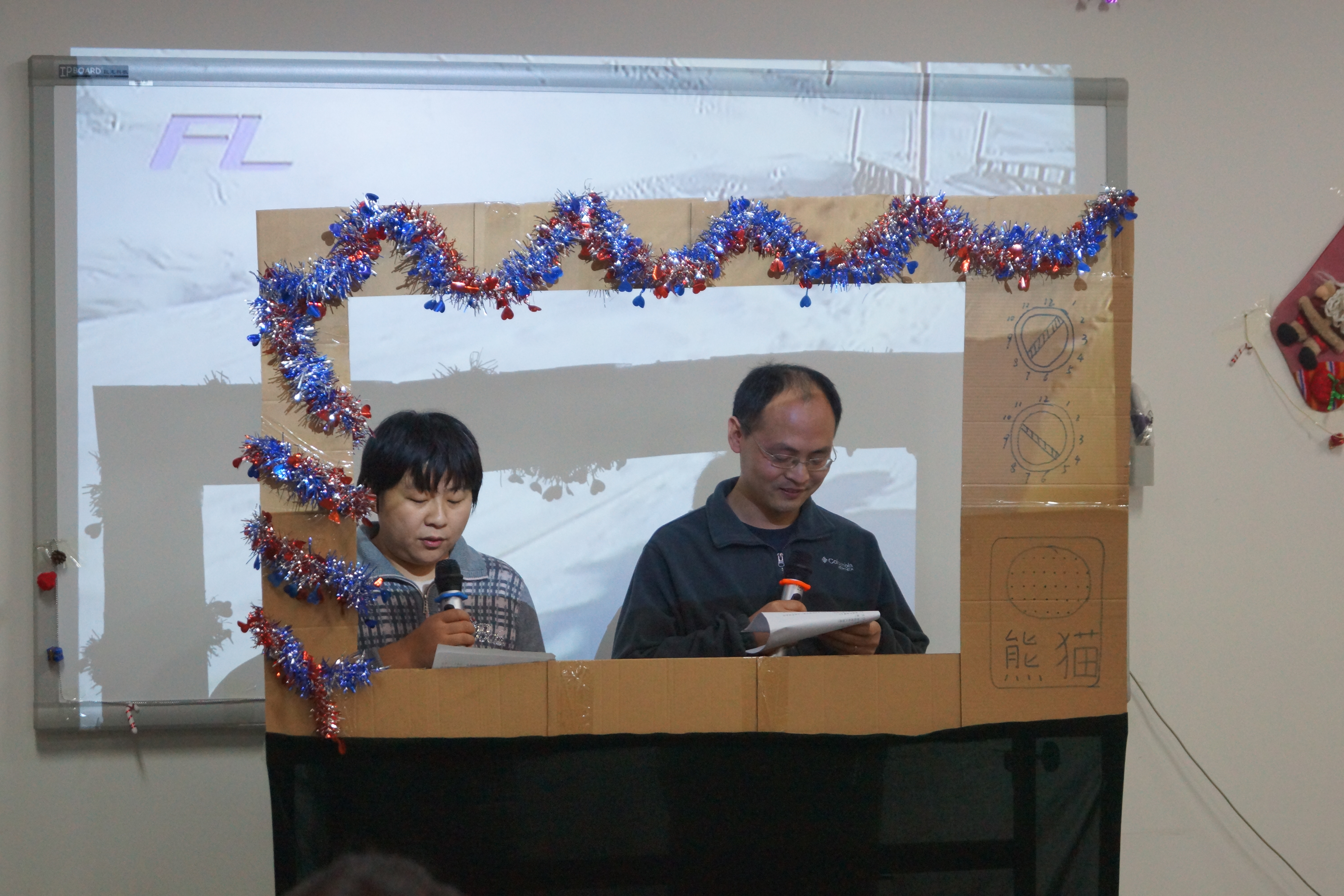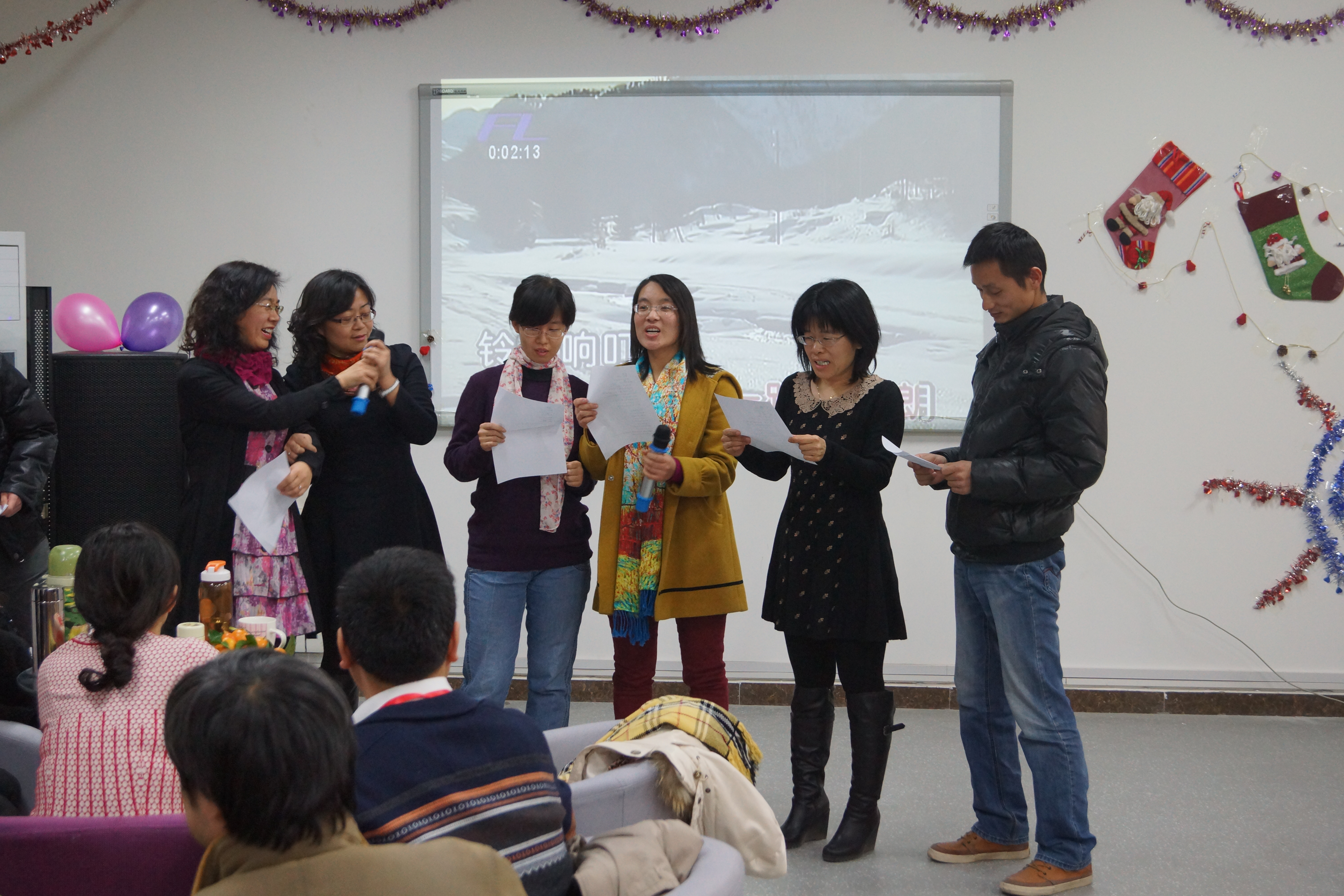 新投入使用的教工之家,开展了学院岁末迎新年联欢会。各个工会小组的老师们带来了丰富多彩的节目,充分展示了大家多方面的才艺。数学工会小组自创的新闻联播和物理工会小组自编的三句半表演,将社会热点和学校发展以轻松幽默,诙谐调侃的形式展示,包袱不断,掀起会场一阵阵的笑声和掌声;力学工会小组和制图工会小组带来了互动游戏,生动有趣,现场老师积极参与,惊喜不断;信计工会小组放映了一段提前录制剪辑好的《萌娃贺新年》的视频,各位老师的宝宝们或歌或舞,萌态十足,配上恰到好处的字幕符号,看起来就像在收看现在热播的《爸爸去哪儿》 一样。节目表演中还穿插进行了现场抽奖、乒乓球、羽毛球羽比赛的颁奖,获奖的老师们兴高采烈,现场掀起一个又一个小高潮。联欢会给寒冷的冬季增添了一把火,给平淡的生活底板增添了许多亮色,联欢会在数学系工会合唱《明天更美好》中结束!
