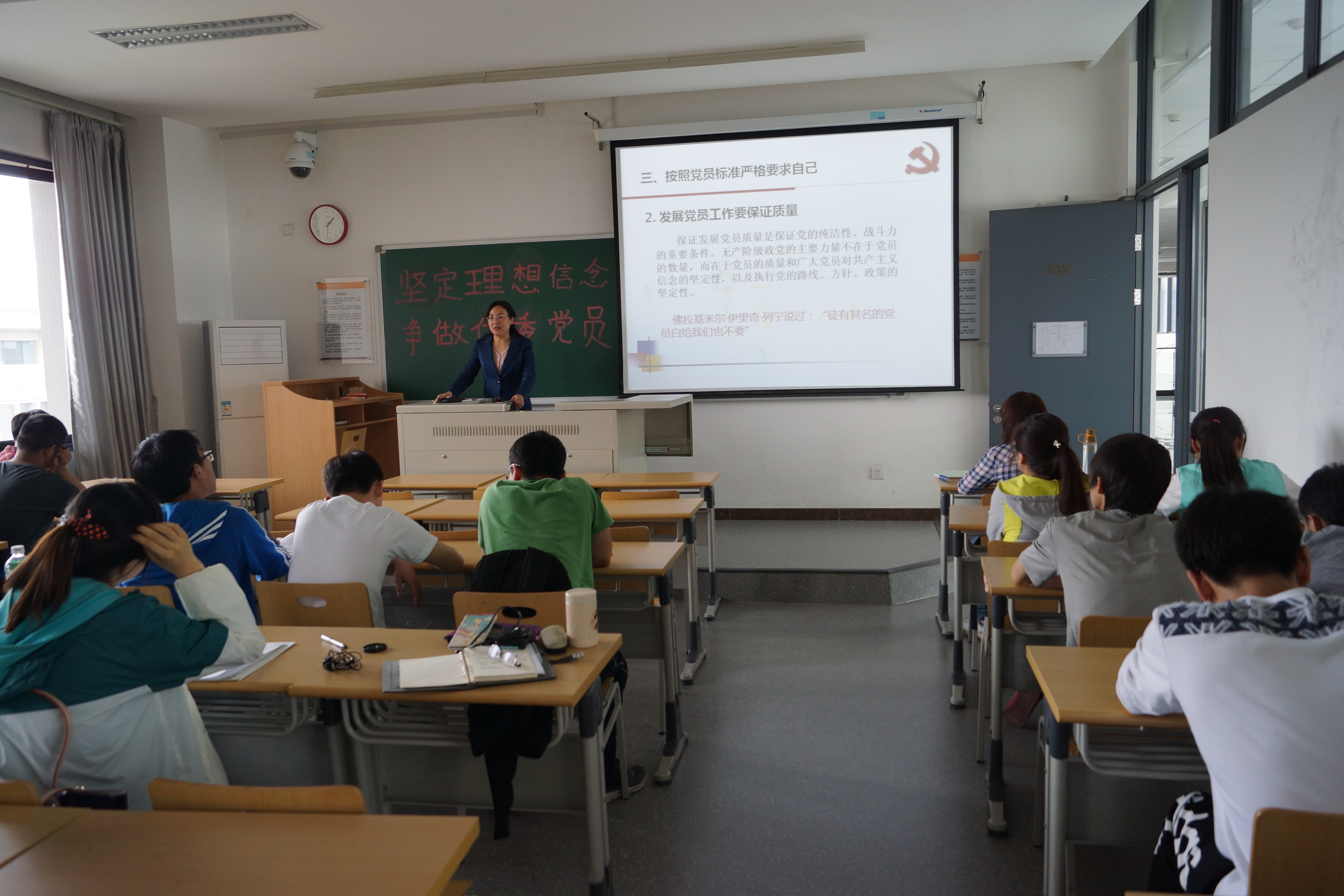 党委书记程士珍老师在基A-527教室为第55期入党积极分子、第二期发展对象和全体本科生第一党支部成员做了 “坚定理想信念 争做优秀党员”的专题理论党课。