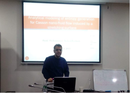 Mohammad 教授首先由能量守恒定律和能量转化定律引入了其所研究问题的物理意义,然后具体介绍了一种Casson纳米流体流动的数学模型,根据该模型的近似解析解,详细分析了各物性参数对流体流动的影响,尤其是讨论了熵产生数。