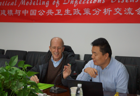 会议过程中,世界卫生组织驻华代表处Lance和传染病防控中心的参会人员对传染病数学建模产生浓厚兴趣,并展开了热烈的讨论,提出了在研究麻疹等传染性疾病中所面临的困难与挑战,并期待未来的长期合作与交流。