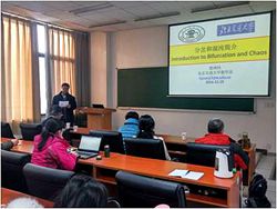 曹教授首先作了题为“分岔和混沌简介”的学术报告,介绍了随着参数的变化,动力系统解的数量和稳定性发生分岔,进而可以探索到系统可能通向混沌的道路。报告中还利用图形和实例直观的阐述了分岔和混沌的条件、性质和特点。接着,参会师生与曹教授进行了热烈的讨论,大家对相关问题进行了广泛的交流。最后,曹教授和大家分享了香港城市大学陈关荣教授《<混沌>的故事》里面的一些精彩内容,讲座圆满结束。