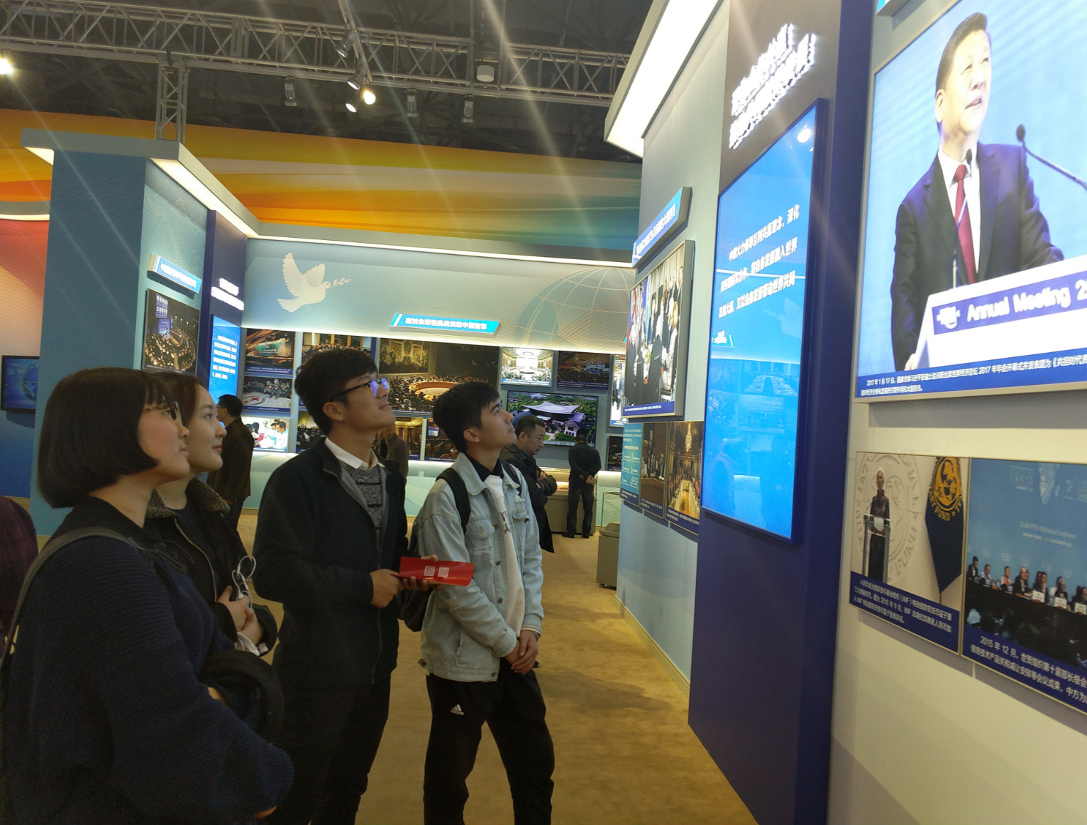 首先,同学们参观了“践行新发展理念,引领经济发展常态”展区。大家对我国五年来经济的突飞猛进表现出了激动和自豪。紧接着,同学们来到了“实现强军目标,建设世界一流军队”展厅和“推动构建人类命运共同体,谱写中国特色大国外交新篇章”展厅,深入了解了我国的军事发展和外交能力。随后根据我院的专业特色参观了与网络科技有关的特色体验展区,看到了我们专业的大好前景。随后同学们陆续参观其他展区。