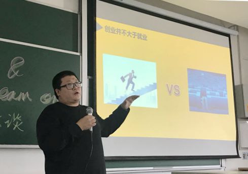 高航从目前角色引入交流,从探讨什么是创业与在场的同学展开讨论,从自身的体会分享了创业的目的是什么;由创业并不大于就业,分析自身职业生涯发展并不等同于别人眼中的成功与否;从自己在职场上八年的积累,以及两年的创业经历,总结了自身对于创业需要具备的五项基本元素——“目标与决心、知识和技能、市场洞察力、资金和资源、热爱和情怀”,强调了应掌握的“计算机能力、英语能力以及社交能力”三大技能。他用唠家常的方式,真实质朴而又生动地描述了自身成长的心路历程,分享了成长过程中的小故事,由小及大,告诉广大学弟学妹,良好的心态和优秀的学习能力是自身职业生涯发展的基础;要学会在错误和挫折中成长;要先做专才再做通才;要迎难而上,不要被自己的“极限”所局限。希望广大同学在校期间打好学业基础,注重拓展视野,做好长远规划,在学习中坚持,在困境中努力,努力成为最想成为的自己。