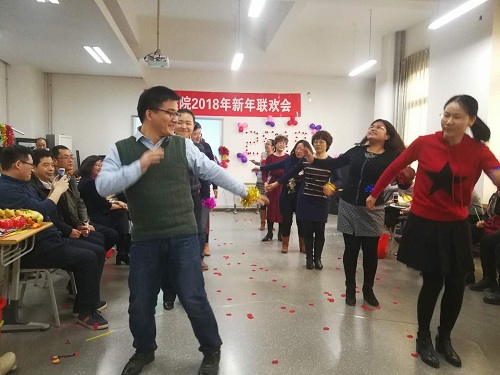 2018年新年联欢会于2018年1月9日在基C401召开,全院老师六十余人参加。老师们在紧张的教学活动之余,编排了丰富多彩的节目,在阵阵欢笑中度过了一个难忘的下午。
