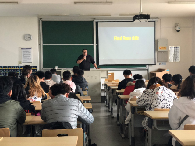 讲座以“Find Your Gift为题,以“起点”为开始,从步入的大学生活讲起。他提出了大学生活中必不可少三件事---“读书、运动、英语”,并且强调,这三件事更应该贯穿整个职场生涯,甚至人生生涯。大学生活虽多姿多彩,但是学习知识,尽可能的多读有意义的书,丰富涵养是最为重要的事情;坚持运动, 有一个健康的体魄,有一项自己热爱的运动,不仅可以让自己保持身体的健康,还可以适当的活跃思维,提升精神面貌;再有就是“英语”, 学长以自己的经验指出:你的英语每进步一个台阶,你未来步入社会时所接触的工作层面、你所得到的机遇都会拓宽,同时在国际交流方面也会有更多的收获。