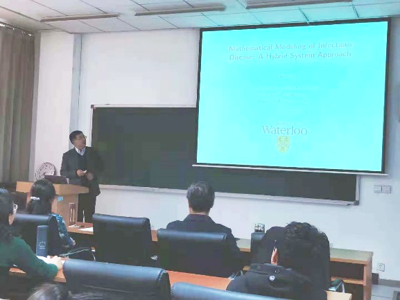 刘教授作了题为“Mathematical modeling of infectious disease: a hybrid system approach”的学术报告,介绍了SIR传染病模型,分析了根据实际情况改进后的SEIR模型,阐述了多种可以控制传染病传播的措施,给出了具体控制方法的理论模型和数值模拟结果。针对参会师生提出的问题,刘教授进行了详细地解答,并与大家进行了热烈的讨论。
