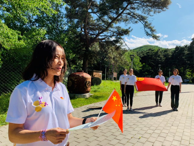 齐唱国歌和团歌之后,优秀团员代表宋卡妮在团旗下演讲,激励大家共同奋进,争当时代复兴的继承人。