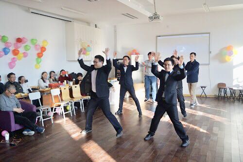 最后,崔景安院长和田芳老师带来了情歌对唱《莫斯科郊外的晚上》,教师们更是在美妙的歌声中,自发上台跳起了交谊舞,联欢会在载歌载舞中圆满谢幕。