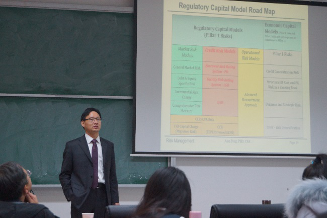 彭老师首先对金融风险管理的有关概念进行了介绍,包括量化指标、风险分类、风险管理流程等。然后,他重点讲解了风险与资本的匹配关系,比如风险偏好与资本目标等。接下来,他以资本监管当局资本模型为例,阐述了数学在金融风险管理中的广泛应用。最后,他通过自己参与制定巴塞尔协议及新巴塞尔协议的亲身经历,和大家分享了加拿大成功避免美国2008年金融危机冲击的经验教训,以及中国在这次危机背后为世界做出的重大贡献。报告结束后,针对大家提出的共享单车押金、住房贷款等热点金融问题,彭老师耐心地进行了解答,并同与会师生展开了热烈的讨论。