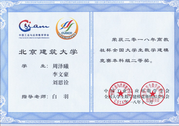 全国大学生数学建模竞赛创办于1992年,由教育部高等教育司、中国工业与应用数学学会共同主办,每年一届,目前已经成为全国高校规模最大、在国内外最具影响力的基础性学科竞赛。2018年,来自全国33个省、市、自治区(包括香港和澳门)以及美国、新加坡的1449所院校的42128队的十二万多名大学生报名参加了9月13日至16日举行的竞赛,共评选出了全国奖1679队,其中本科组一等奖291队、二等奖1193队,分别占本科组参赛队总数的0.75%和3.09%。北京赛区共有2142队参赛,其中324队获得北京市一等奖,463队获得北京市二等奖。