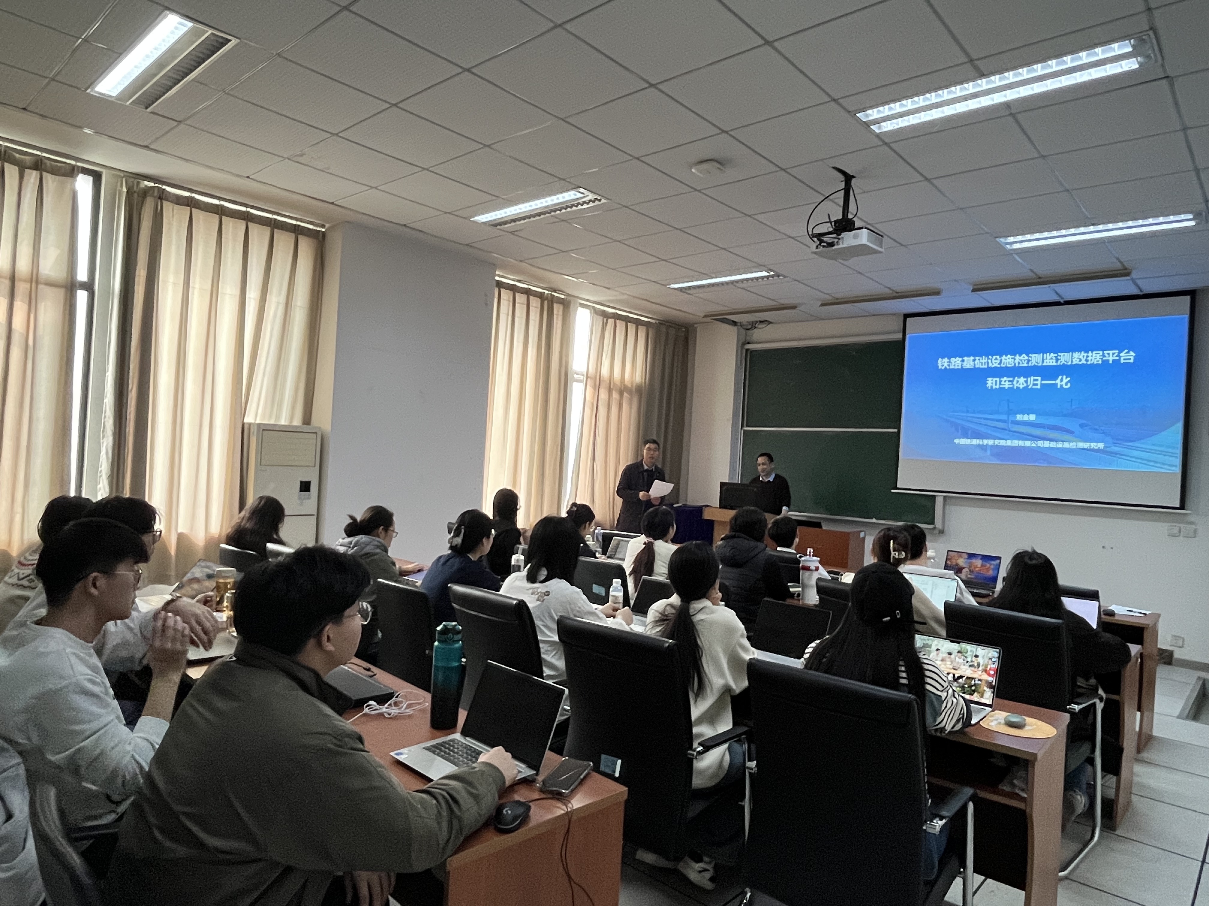报告结束后,进入互动交流环节。师生们积极提问,刘研究员耐心解答了师生们的每一个问题,现场气氛活跃,学术氛围浓厚。通过此次面对面的交流,师生们不仅对铁路基础设施检测监测等内容有了更深入的理解,还进一步拓宽了师生们的学术视野,激发了师生们的科研热情,为应用统计专业学位点课程体系建设迈出坚实的一步。
