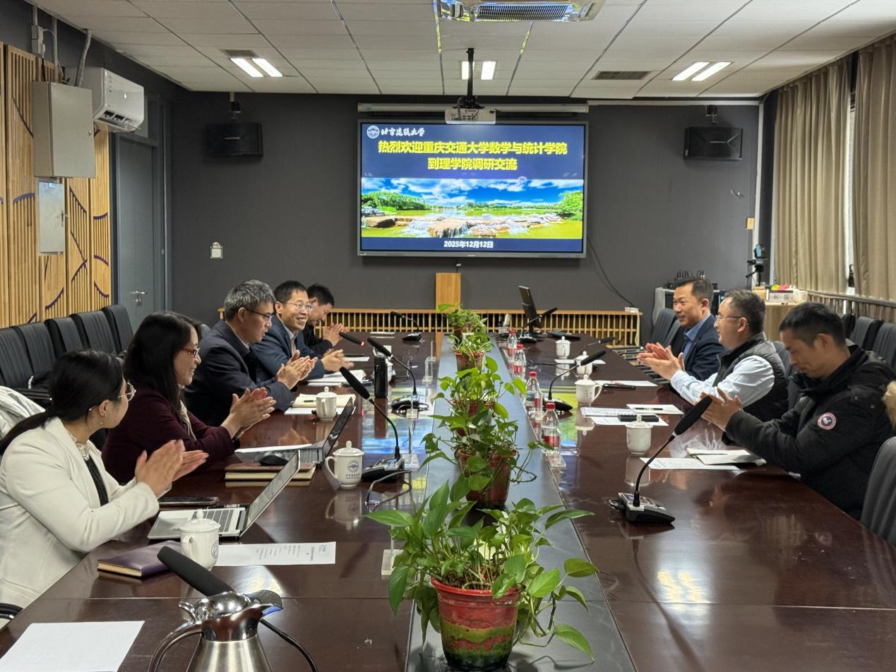 12 月 12 日下午,重庆交通大学数学与统计学院副院长谭远顺、数学与应用数学系主任胡进、信息与计算科学系主任张雷、应用统计系主任李华等一行,到淫妻小说 调研交流。淫妻小说 副院长(负责日常工作)王恒友、副院长白会娟及相关教师参加座谈交流。双方围绕学科建设、人才培养、专业培养方案修订等议题展开深入探讨。此次调研交流活动由淫妻小说 副院长刘茂省主持。