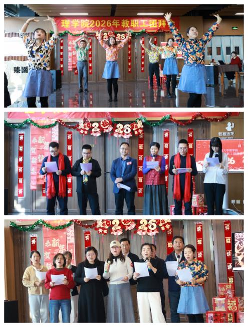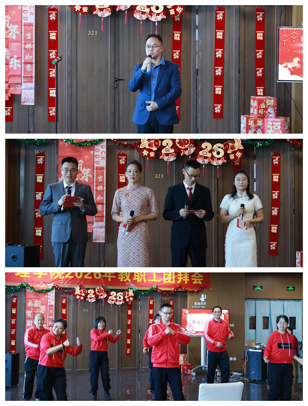 党委常委、副校长朱静在团拜会上致辞,为学院全体教职工送上新春祝福。她对学院过去一年在党建思政、基础教学、人才培养、学科建设取得的成绩表示肯定,对全体教职工的辛勤付出表示衷心感谢。她希望,全体教职工在新的一年继续携手共进、锐意进取,为学校人才培养提供坚实的理学支撑,以奋发有为的精神推动学院事业高质量发展。