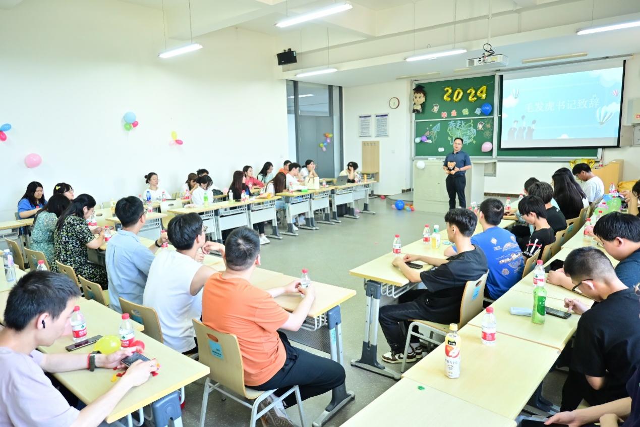 6月24日晚,淫妻小说 在基C404举办2024届本科生毕业欢送会。淫妻小说 党委书记毛发虎、团委书记代云、班级导师王英、专任教师何黎黎及2024届本科毕业生参加。