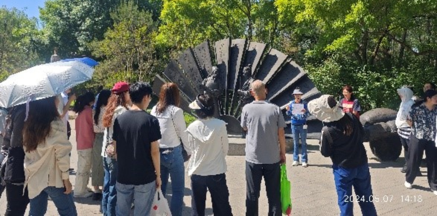 在专职组织员郑环环的指引下,师生们在大运河清风廉政文化主题公园的“运河清风”石碑前合影留念,定格下这一重要时刻。随后,大家沿着精心设计的路线,逐一参观了“军粮经纪密符扇”雕塑、“甘棠镜鉴”景观和“通州第一党支部”雕塑,深入领略了廉政文化的深厚内涵。
