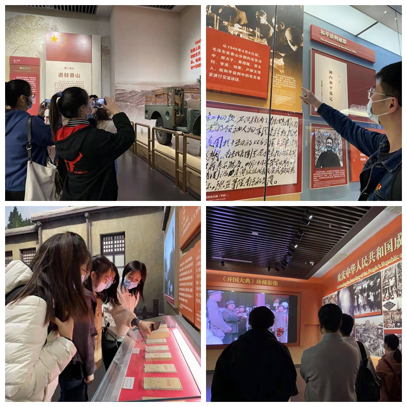 在香山革命纪念馆,大家集体观看了《为新中国奠基——中共中央在香山》主题展览。展览分为“进京‘赶考’”、“进驻香山”、“继续指挥解放全中国”、“新中国筹建”、“不忘初心、牢记使命、永远奋斗”5个部分,全景式生动呈现了中共中央在香山期间领导全国各族人民开启中国历史发展新纪元的光辉历程。大家对国共和谈和“开国大典”原始影片尤为感兴趣,纷纷驻足观看。参观结束后,同学们纷纷表示,到香山革命纪念馆参观,就像上了一堂生动的党史课,大家追寻历史记忆、感悟初心使命,接受了深刻的思想洗礼。