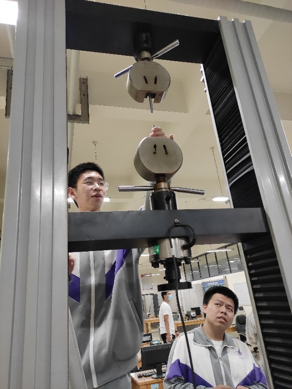 在拉压扭转实验室,彭培火老师和王秀芳老师给同学们介绍了低碳钢材料的力学性质。随后在两位老师以及志愿者的协助和指导下,同学们分组亲自动手完成了低碳钢的拉伸实验,仔细观察了实验过程中的各种现象,了解了塑性金属材料拉伸曲线的四个阶段。同学们都表现出了极大的好奇心和学习热情,积极地提出自己的问题与想法,与老师和同学探讨交流。